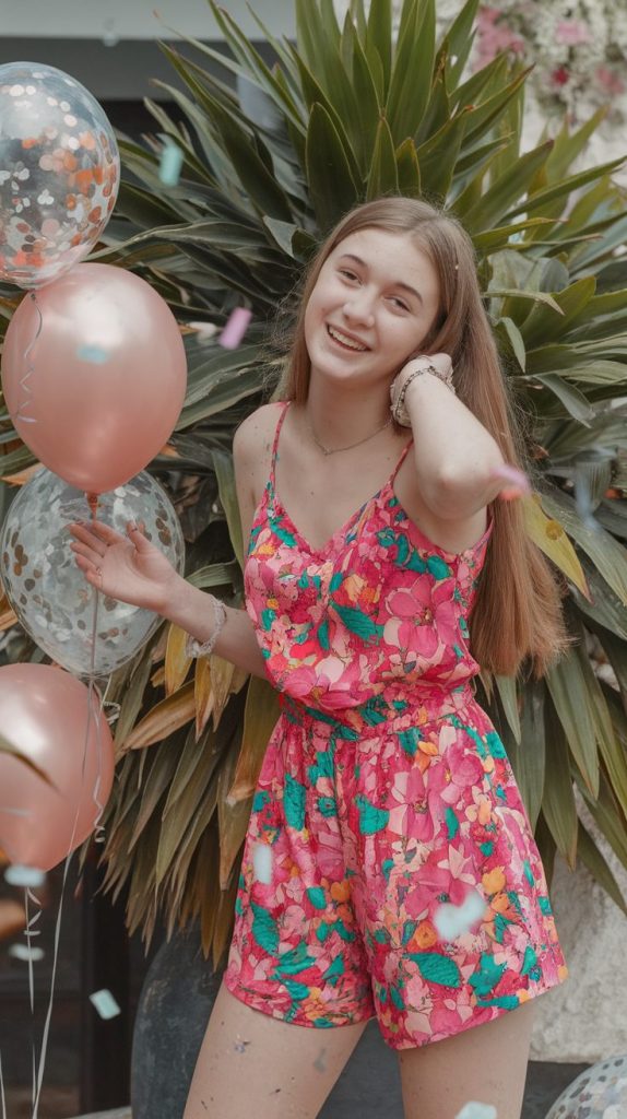 For your 13th birthday, go for bright colors or playful prints—think florals, polka dots, or tropical vibes. If you’re hosting a summer party, a flowy romper is ideal. For cooler months, a long-sleeved jumpsuit with boots hits the sweet spot between cozy and chic.