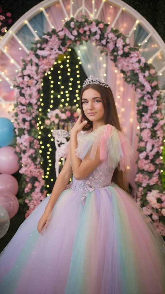 If you want the fairytale without the full ball gown commitment, a tulle skirt outfit is a dreamy middle ground. Pair a fluffy tulle skirt with a simple crop top or sparkly blouse, and you’ve got a perfect Sweet 16 look.