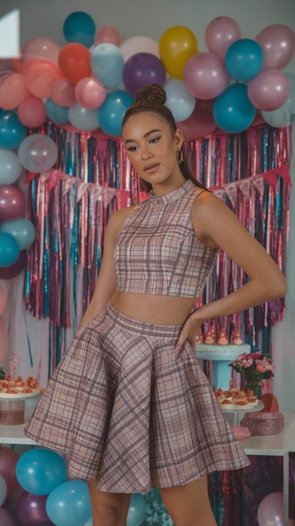 Want something trendy but still classy? Try a two-piece set—like a cropped top with a matching mini or midi skirt. It’s modern, playful, and shows you’ve got a killer sense of style.