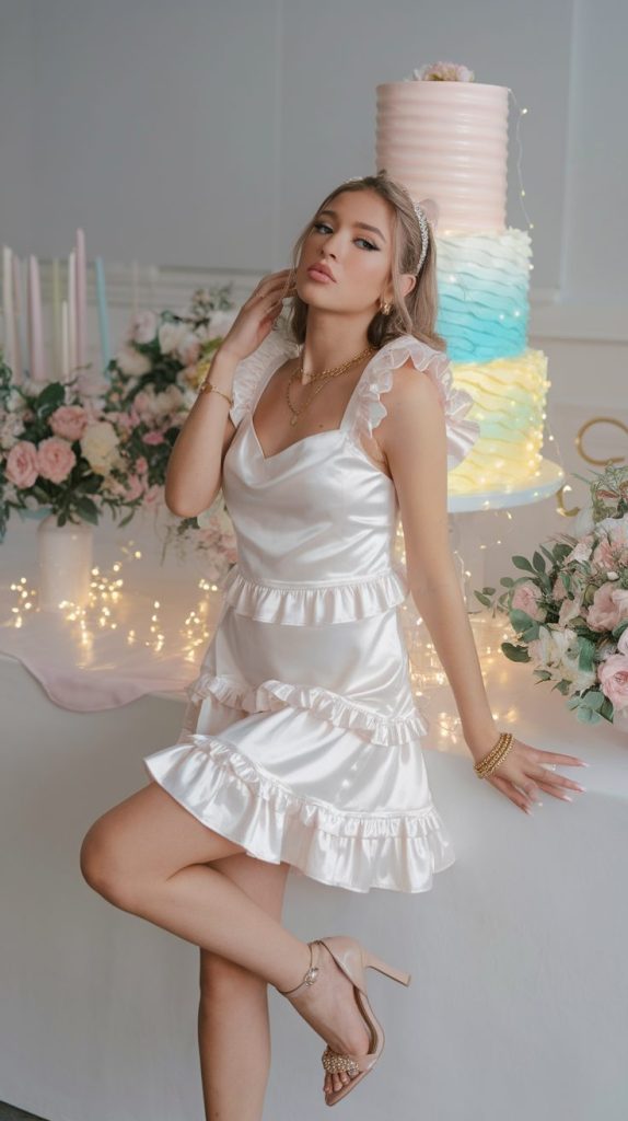 There’s something about a white birthday dress that just feels pure class. It’s soft, bright, and looks amazing under both daylight and neon lights.