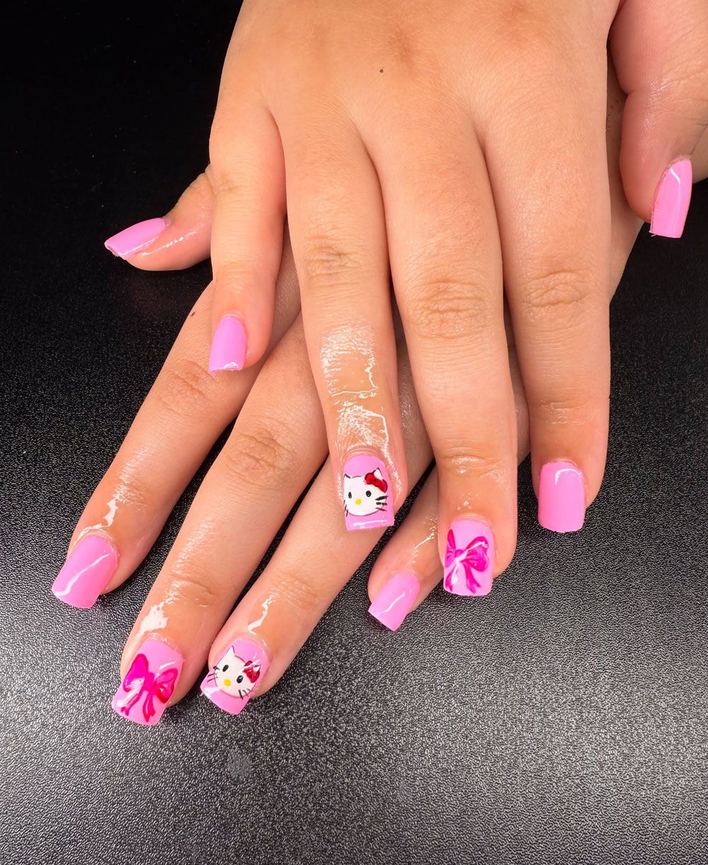 For the playful birthday girl, these Hello Kitty-inspired pink nails with cute bows are pure nostalgia with a modern twist. They’re sweet, girly, and so much fun.