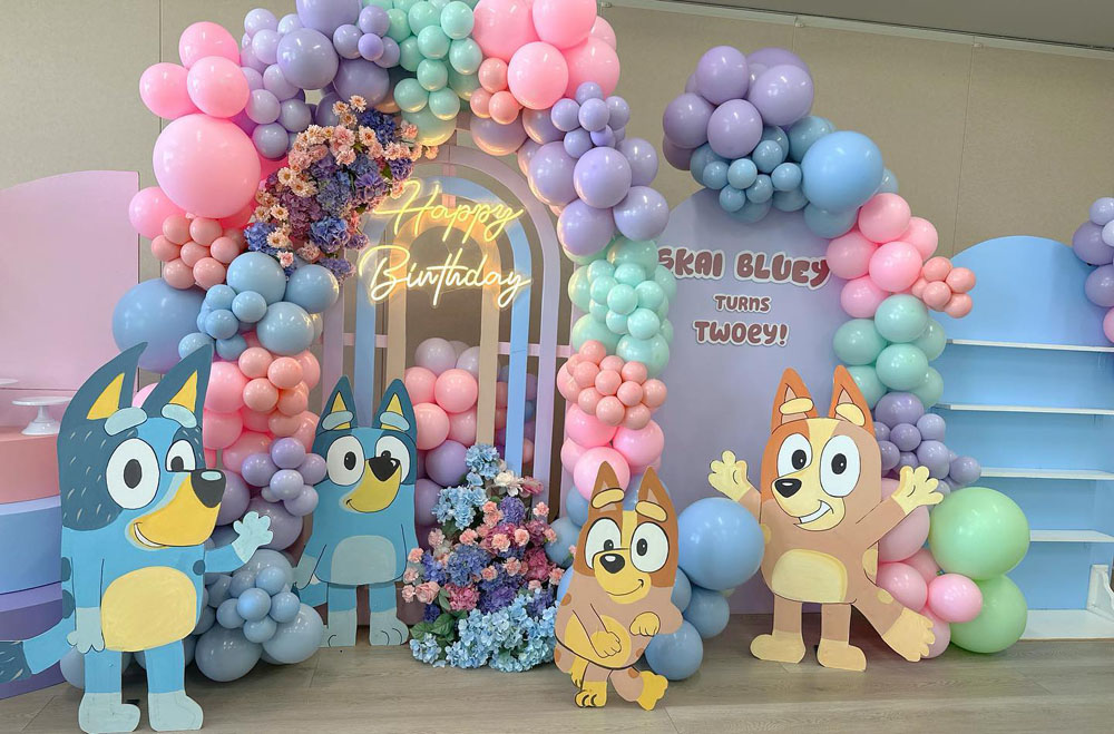 If your toddler is a fan of the lovable Australian pup, a Bluey Party is perfect! Create a party space filled with colorful decorations that reflect the bright, cheerful world of Bluey.
