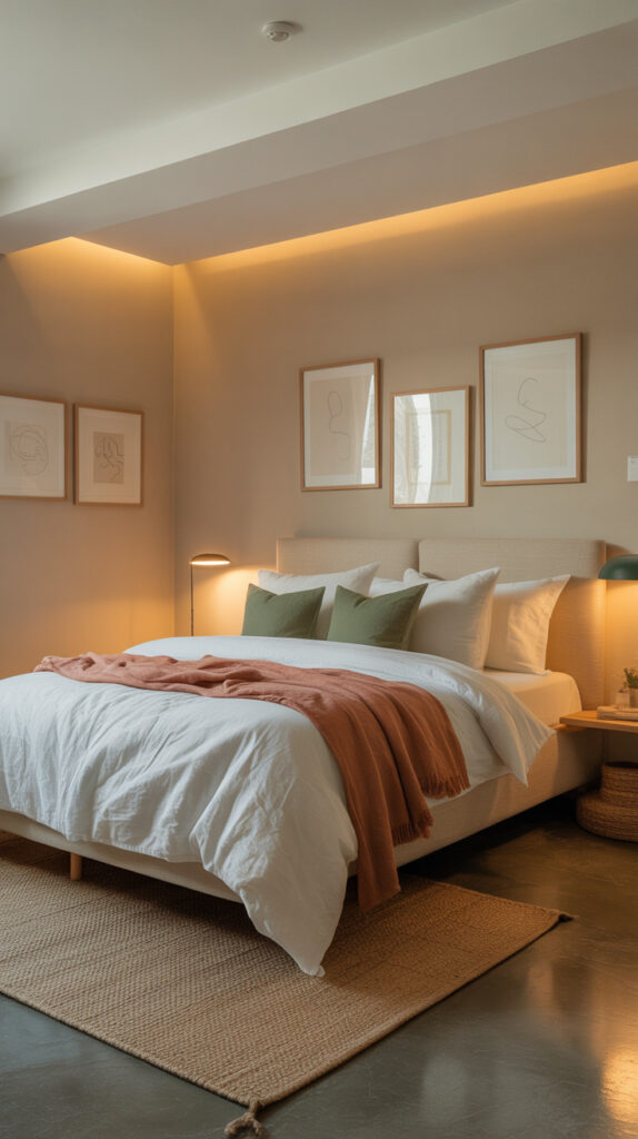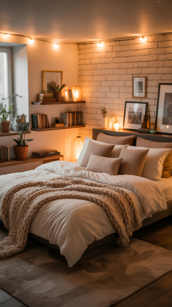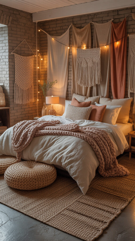 I’ve noticed that the coziest basement bedrooms lean hard into texture. Soft fabrics, layered materials, and tactile surfaces create a space you want to sink into. The room feels designed for comfort instead of daylight.
