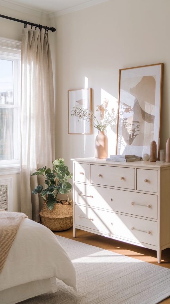 I removed wall art that felt loud or distracting. Visual noise affects mood, especially in a bedroom. Calm images promote calm thoughts.