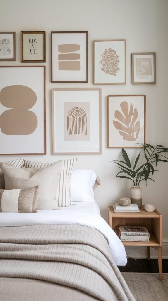 Choose artwork that makes you feel relaxed or inspired. Nature scenes, abstract neutrals, or personal photos work beautifully.
