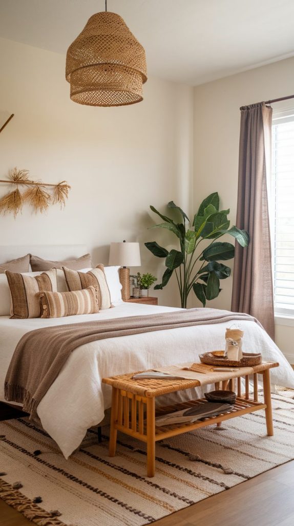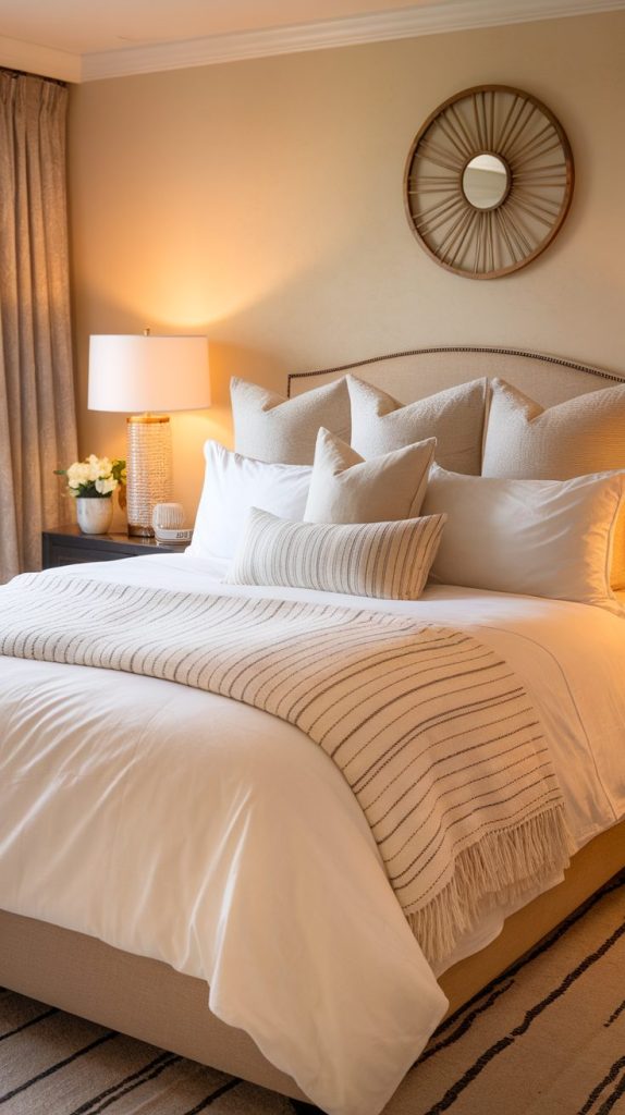 Choose neutral or warm tones like beige, cream, soft gray, or muted pastels. These colors calm the mind and make the room feel intentional instead of thrown together.