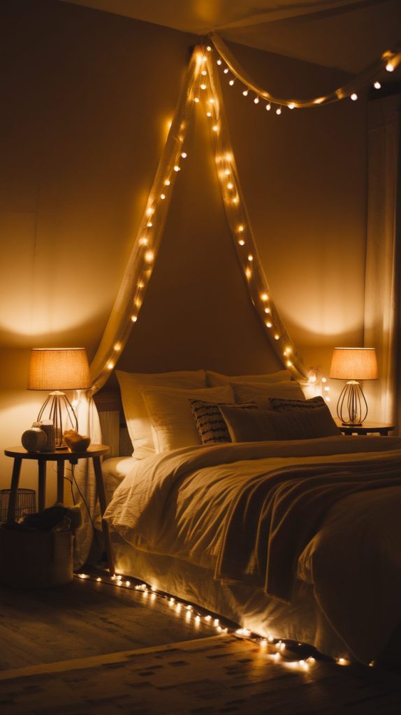 I added fairy lights behind my headboard, and the effect surprised me. The soft glow creates warmth without feeling childish or distracting. Candles work too, but I prefer flameless ones for safety and peace of mind.