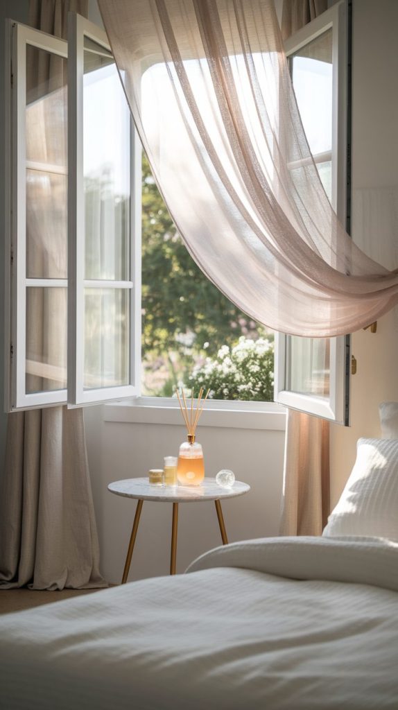 Whenever possible, I open the windows and let fresh air circulate. Stale air holds onto stress and odors more than we realize. Even ten minutes of airflow changes how the room feels.