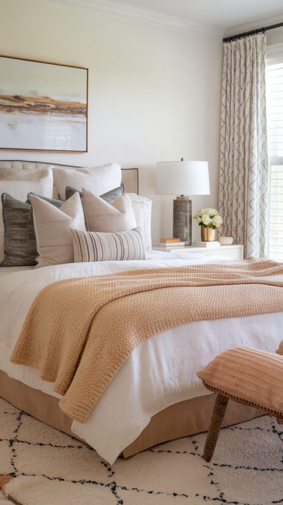 I layer my bed with sheets, a comforter, and one throw blanket at the foot. That setup feels cozy without looking bulky or messy. Pillows matter too, but I keep it realistic because nobody wants to toss ten pillows every night.