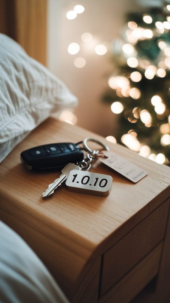 Simple yet meaningful. Get a metal keychain engraved with the coordinates of where you first met, your first trip together, or where you said “I love you.”