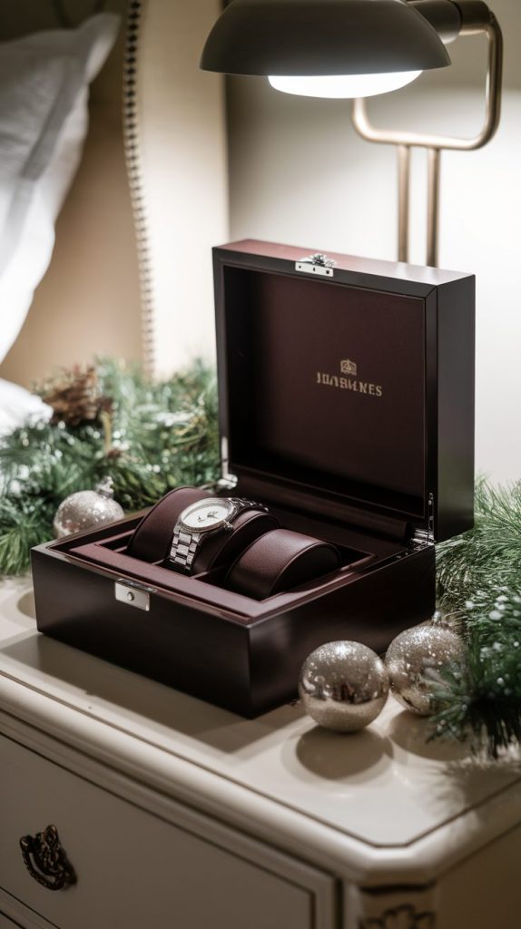If your boyfriend loves accessories, this one hits the sweet spot. A custom engraved watch box or jewelry case keeps his stuff organized while giving major aesthetic vibes.