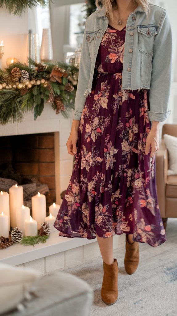 You can’t go wrong with a flowy midi dress—especially one with subtle prints or jewel tones. Pair it with ankle or knee-high boots, toss on a cozy cardigan or denim jacket, and you’re golden.