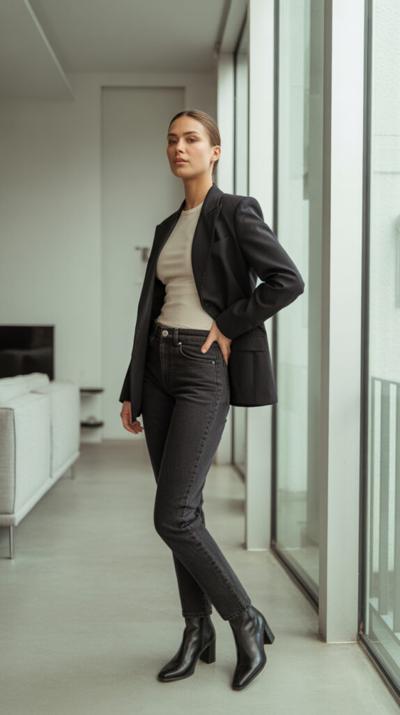 1. Structured Blazer with Slim Jeans