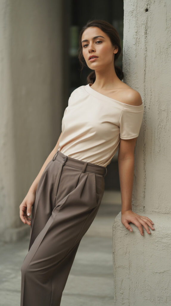 2. Off-Shoulder Top with Straight-Leg Pants