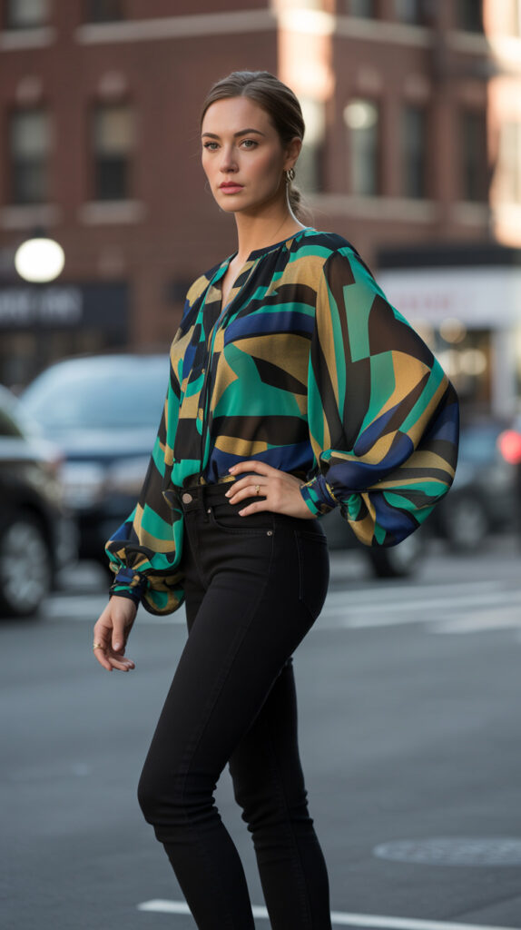 A statement top—think bold color, print, or texture—paired with simple black skinny jeans does exactly that. It keeps things effortless but still intentional.