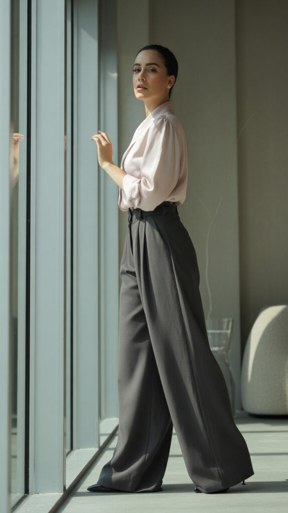 - Choose wide-leg pants with structured fabric