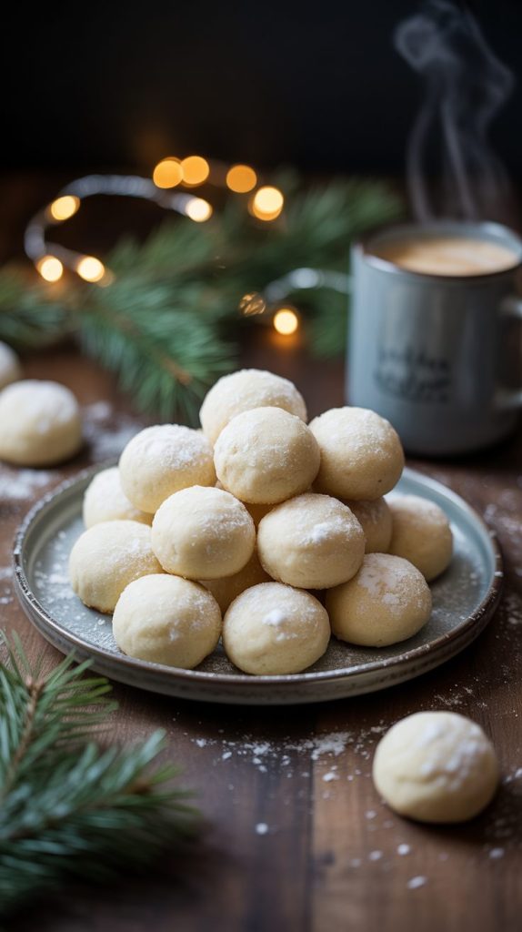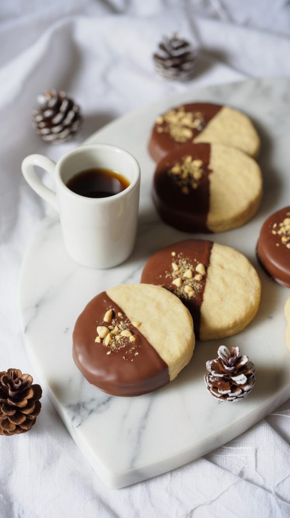 Dip half the cookie in dark or milk chocolate, then sprinkle crushed nuts or edible glitter. It’s classy and festive, and it pairs perfectly with coffee (or eggnog if you’re feeling fancy).