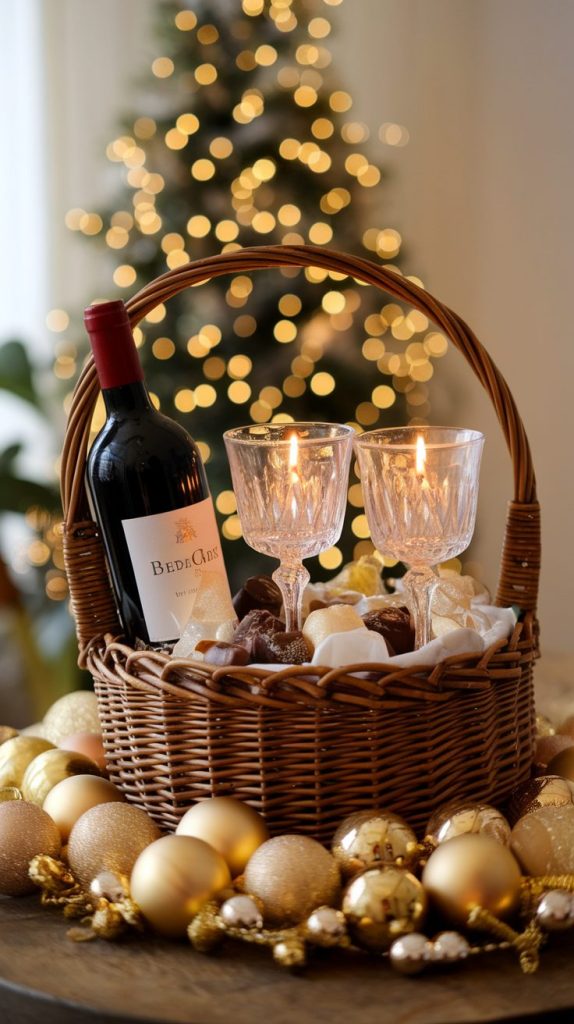 Pro tip: Wrap the basket in clear cellophane with a deep red ribbon—it’ll scream “holiday chic” without looking overdone.