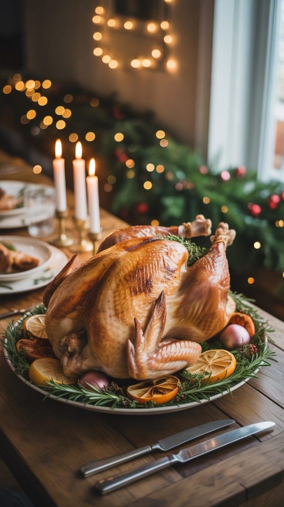 Ah, the undisputed king of Christmas dinner. You can’t go wrong with a classic roast turkey — golden, juicy, and packed with buttery flavor.