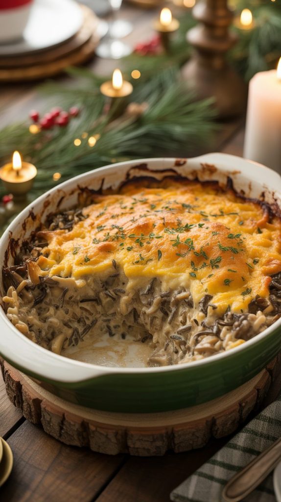 For a hearty, vegetarian-friendly option, go for wild rice and mushroom casserole. It’s earthy, creamy, and deeply comforting.