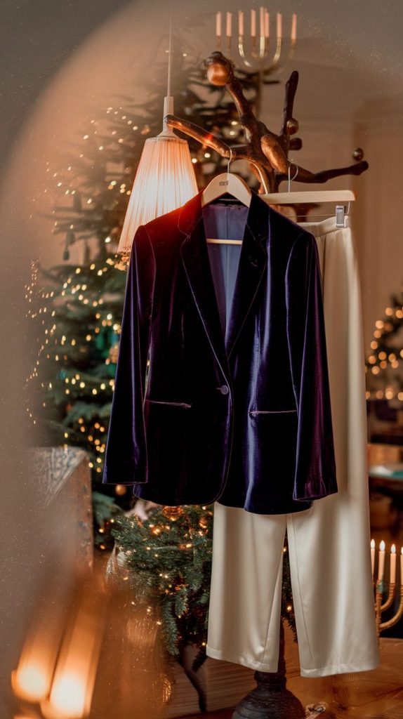 Now, let’s talk power dressing with a twist. A velvet blazer over silk or satin pants gives you that luxe-meets-smart combo perfect for classy parties.