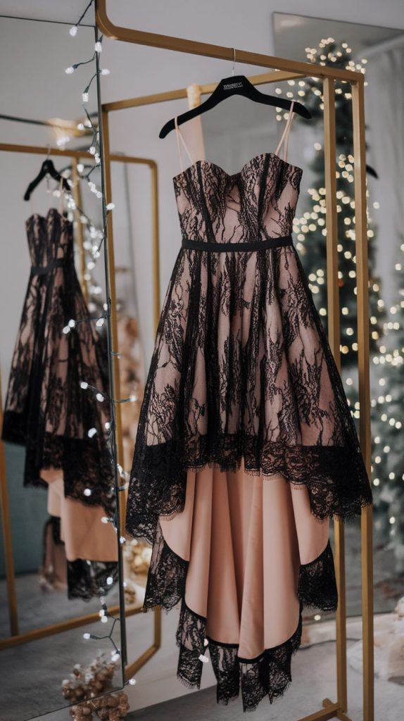Nothing says timeless elegance quite like lace. A black lace dress with nude lining walks the perfect line between festive and refined.