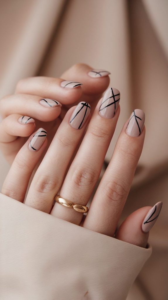 For my minimalists who still want that NYE edge — go for nude nails with sleek black lines. It’s geometric, artistic, and incredibly modern.