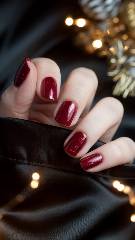 Classic red gets a velvety twist for the holiday season. Use a deep crimson shade with a magnetic or shimmery topcoat to give it texture.