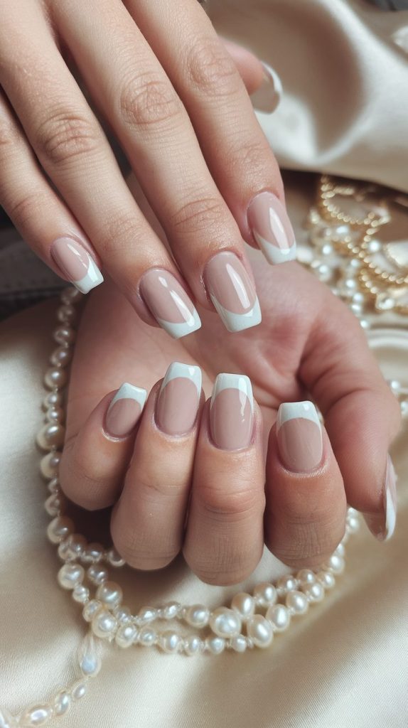 Pearl French tips bring a soft sophistication that says “quiet luxury” louder than any rhinestone ever could.
