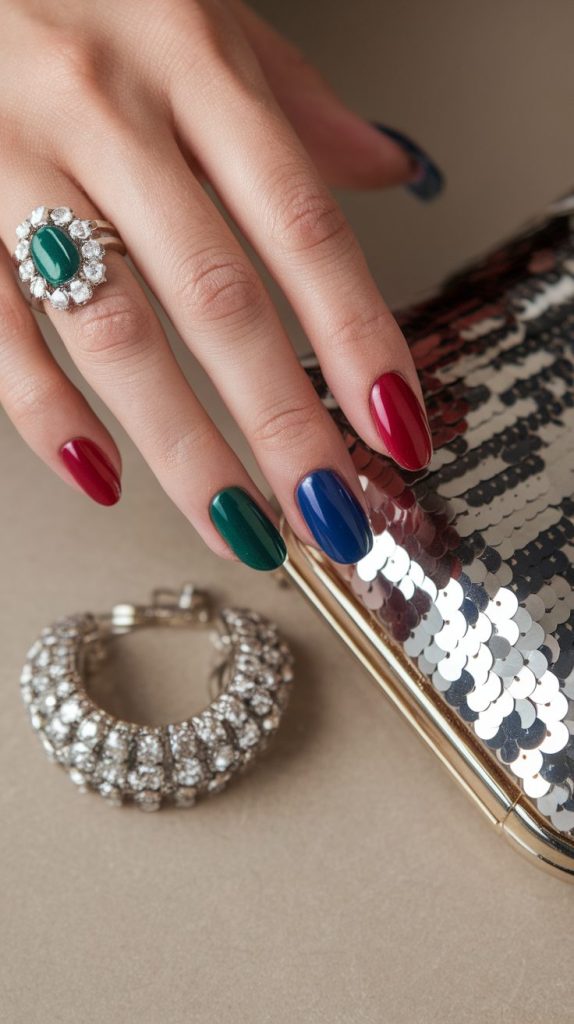Think emerald green, ruby red, or sapphire blue — deep, rich tones that feel straight out of a royal jewelry box.