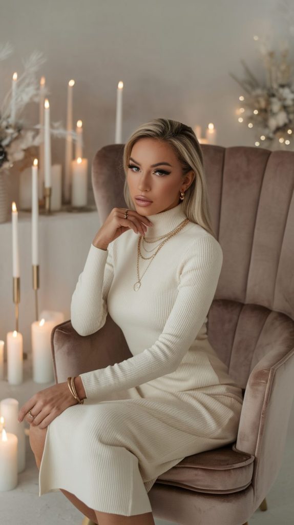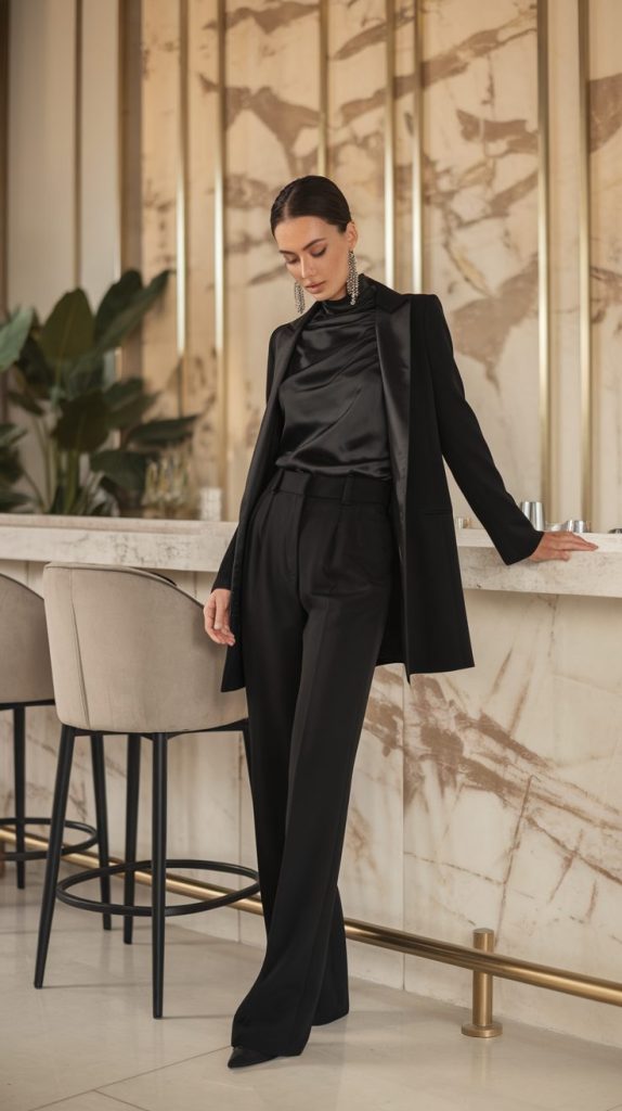Not everyone wants sequins and glitter—and that’s totally fine. A minimalist outfit with clean lines, solid tones, and luxe fabrics can look just as classy. Think a cream knit dress, silk wide-leg pants, or a tailored jumpsuit in soft neutrals.