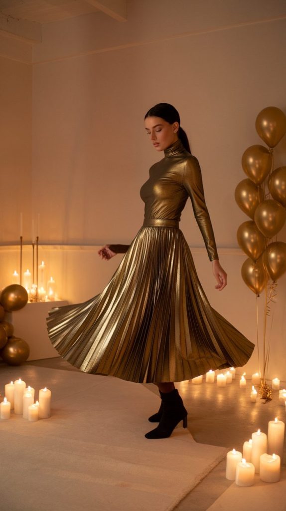 8. The Metallic Pleated Skirt Look (Retro, but Make It Modern)