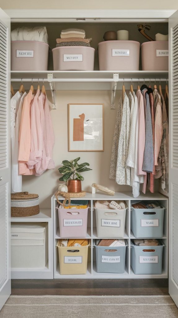 Clear bins help you see what’s inside, while fabric containers keep things looking softer and more intentional.