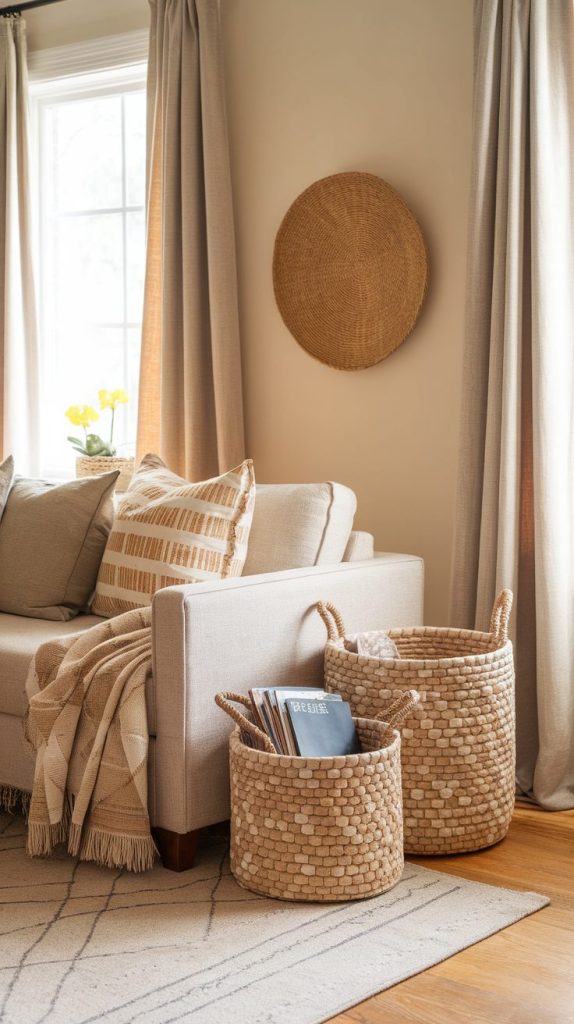 5. Use Baskets to Add Warmth and Hidden Storage