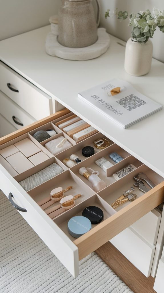 Drawers love chaos unless you tame them with dividers. I use dividers in kitchen, bathroom, and bedroom drawers to keep small items from mixing into a disaster. How many times have you opened a drawer and sighed in frustration?