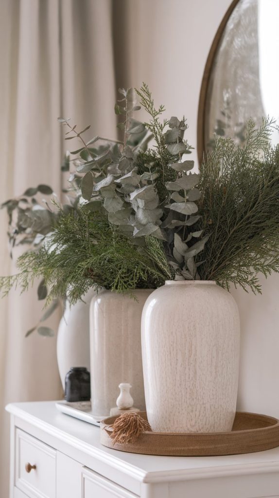 - Evergreen branches in vases