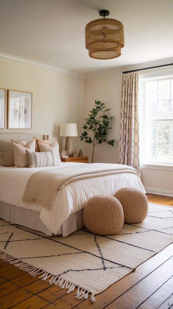 A rug changes how a bedroom feels underfoot and visually anchors the furniture. I added a soft area rug once, and suddenly the room felt intentional instead of unfinished. Rugs work magic when floors feel cold or empty.