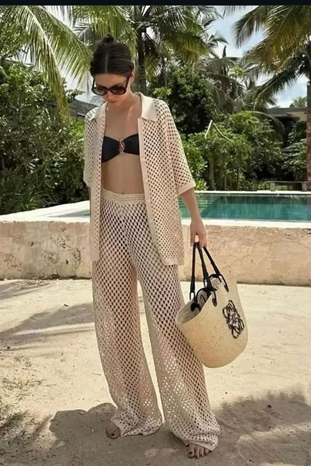 This crochet two-piece set is straight-up poolside perfection! The breezy, open-knit fabric just screams tropical vacay vibes, and I’m living for the laid-back elegance it brings. Throw it over your bikini (like that chic black one peeking through), grab your straw tote, and you’re ready for everything from sipping smoothies under a palm tree to sunset bonfires.