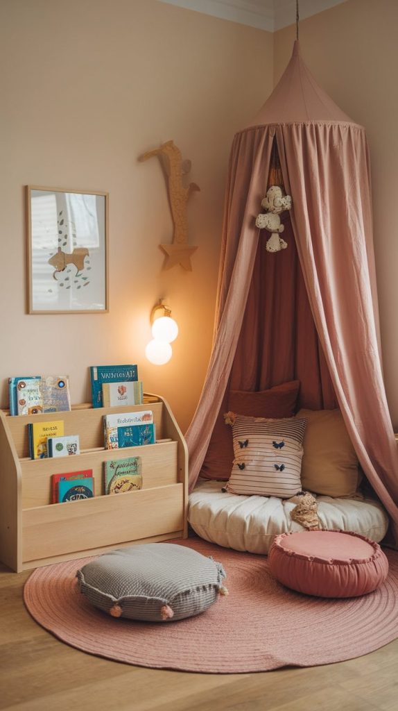 Reading nooks also encourage independence and focus. Kids start choosing books instead of waiting for prompts. FYI, this small corner often becomes the most loved spot in the room.