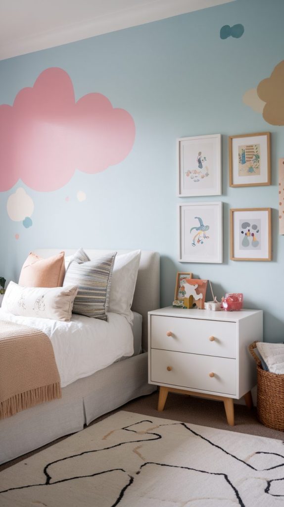 Pastel colors create calm energy without feeling boring or dull. I notice kids respond really well to gentle tones like mint, blush, lavender, and sky blue. These colors soothe the space while still feeling playful and cheerful.