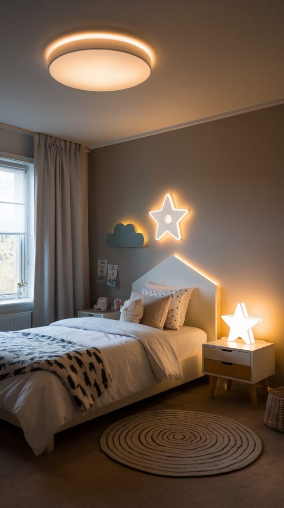Fun fixtures like star lights or cloud lamps add charm without sacrificing function. Kids love playful shapes, and parents appreciate good visibility. Lighting can feel magical and practical at the same time.