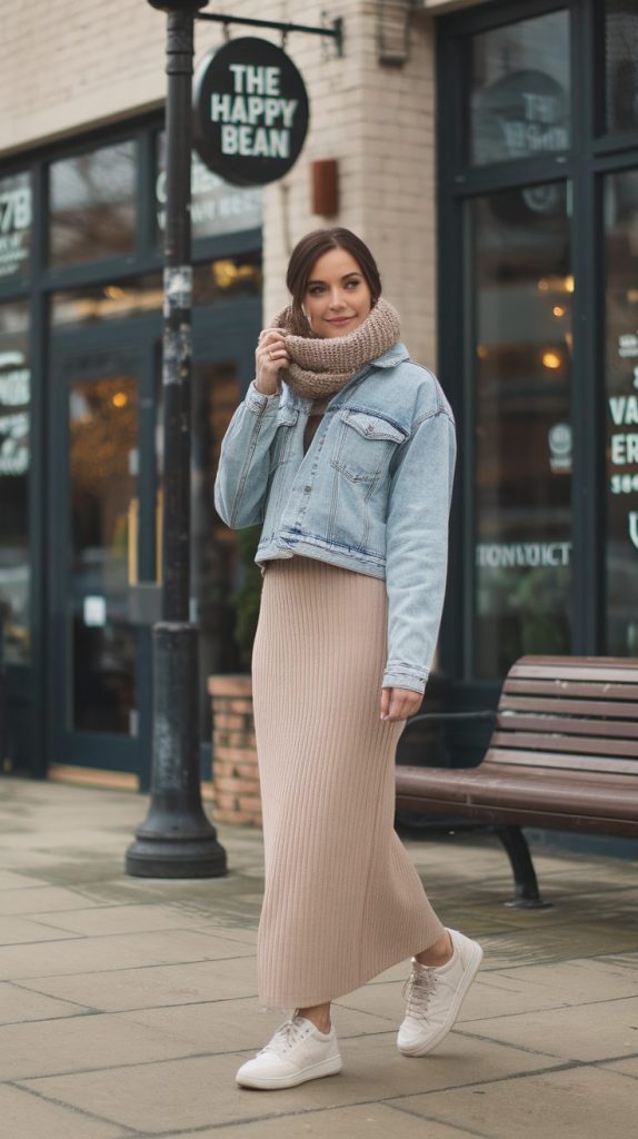 4. Denim Jacket + Knitted Maxi = Laid-Back Layers