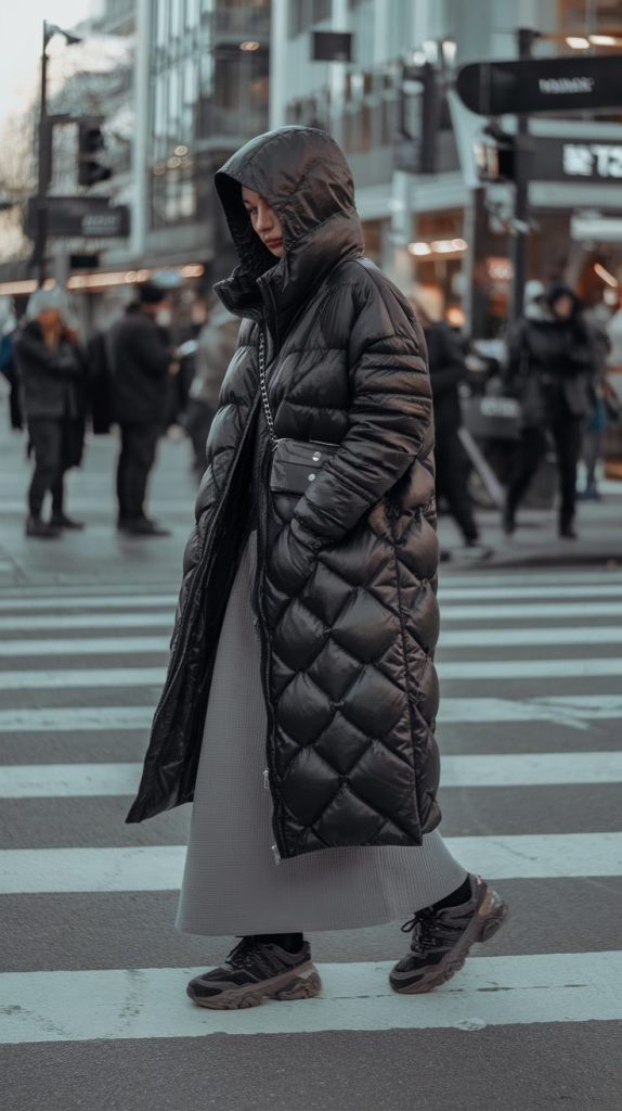 7. Maxi Skirt + Puffer Jacket = Street-Style Cool