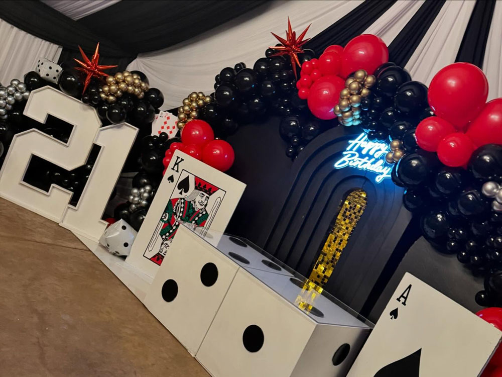 Perfect for 21st birthday decorations for males who want an energetic, high-impact theme without a ton of effort.