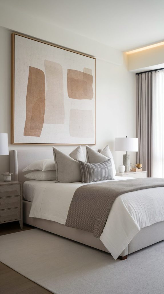 Large-scale art creates impact with minimal effort. One oversized piece beats multiple small ones. This keeps the room clean and focused.