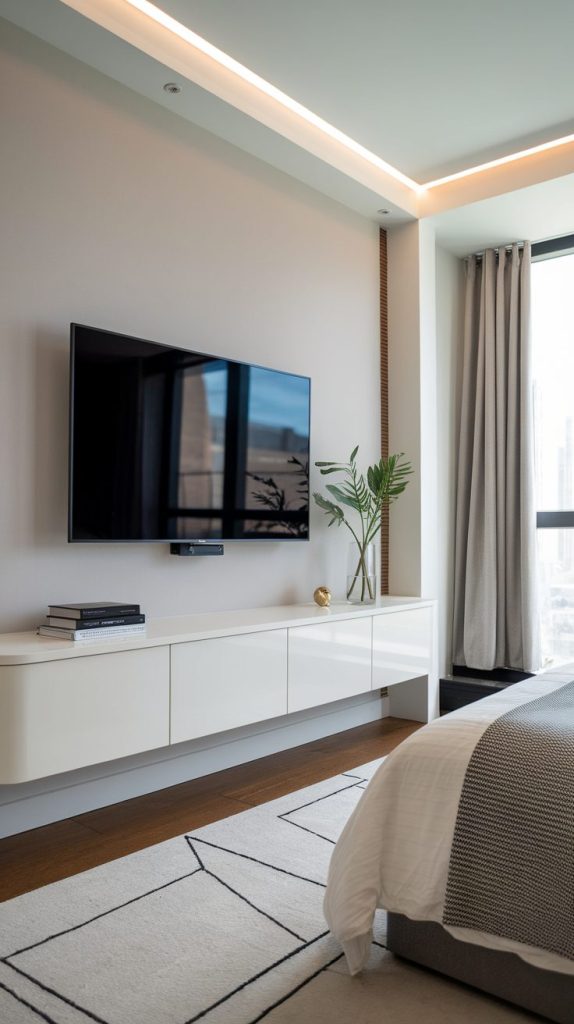 Wall-mounted TVs look cleaner than bulky stands. Conceal cables completely for a polished look. Visible wires ruin modern design instantly.