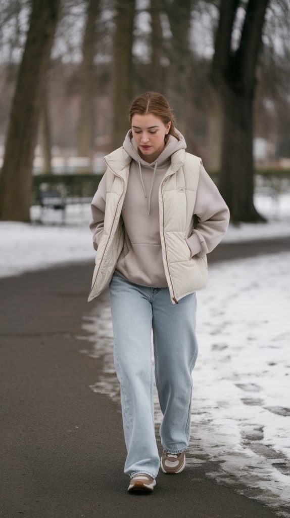 5. The Layer Lover: Mom Jeans + Puffer Vest + Hoodie