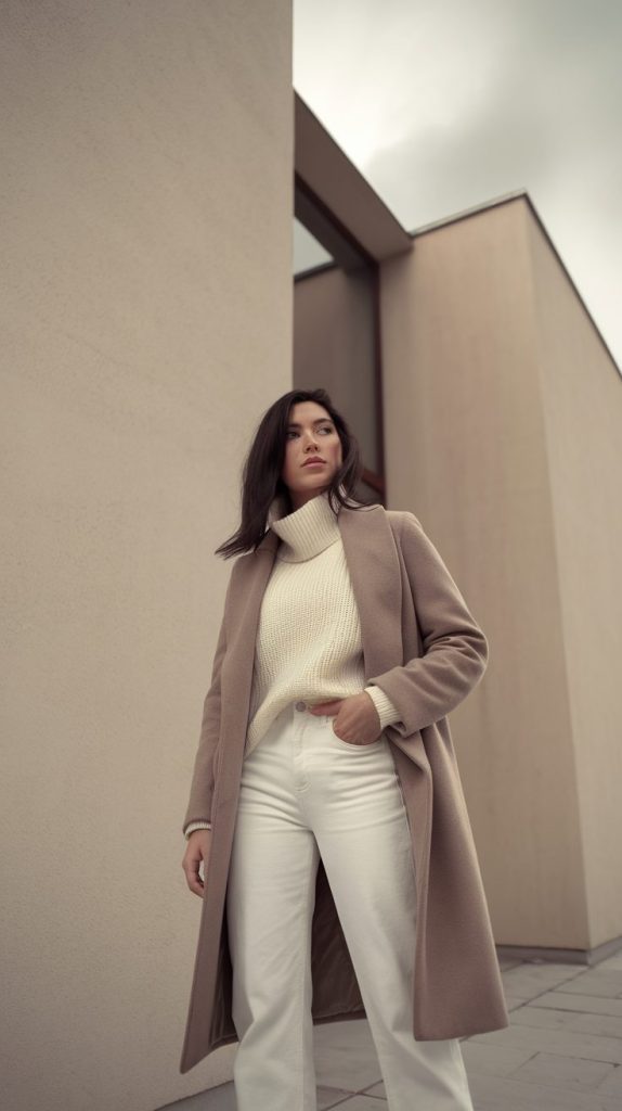 7. The Minimalist Dream: Mom Jeans + White Sweater + Longline Coat