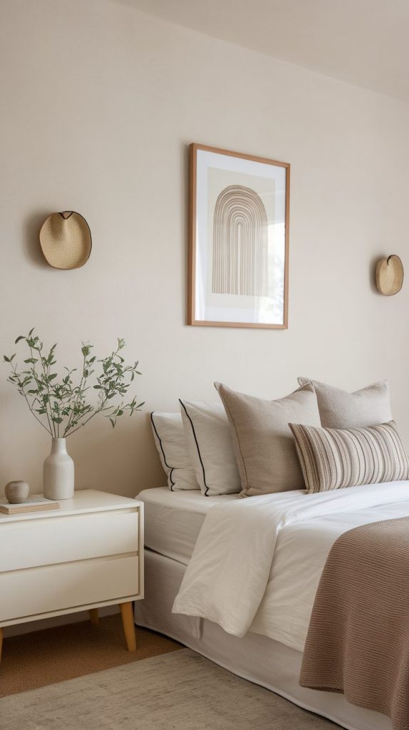 Choose one artwork or photo that you love and let it shine. Everything else supports it quietly. This gives the room intentional energy instead of cluttered chaos.