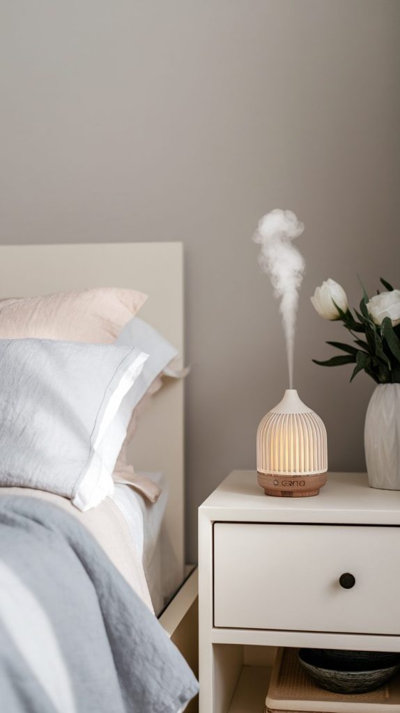 Use candles, essential oil diffusers, or linen sprays sparingly. A light scent refreshes your mood without demanding attention.
